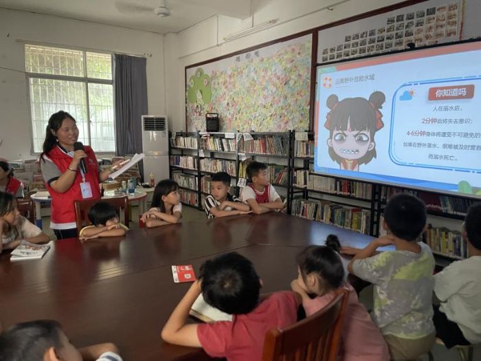 針對暑期留守小朋友安全事故高發的特點,突擊隊成員量身打造了“防溺水+防性侵”雙重防護課程。隊員們化身“安全守護俠”,摒棄枯燥說教,用情景劇演繹溺水險情,播放特制的防溺水急救動畫,清晰展示危險水域特征與急救步驟。在互動游戲中,小朋友們通過模擬“尋找安全水域”“正確呼救姿勢”,將安全知識內化為行動自覺。“人在溺水后2分鐘失去意識,4-6分鐘將遭受不可逆傷害”——當隊員們在黑板上寫下這些數據時,小朋友們眼中的認真取代了嬉鬧,安全意識在心中悄然扎根。