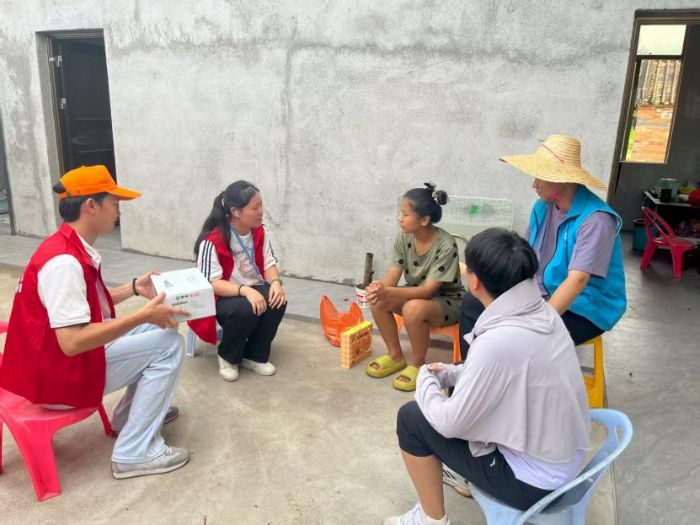 隊員們帶著牛奶、文具等慰問品走進村落,更帶著傾聽的耐心與陪伴的誠意。在獨自生活的小陳家中,斑駁墻壁上整齊排列的“尖子生”“三好學生”獎狀,訴說著少年在逆境中的堅韌。當小陳輕聲說出“我喜歡理科,想搞科研”的夢想時,隊員們當即送上精心準備的科普書籍,認真記下他的學習需求,承諾將持續關注他的成長。