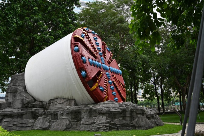 移步室外,實(shí)踐隊(duì)參觀了實(shí)體盾構(gòu)機(jī)展示區(qū)。這里陳列著曾用于廣州地鐵三號(hào)線建設(shè)的盾構(gòu)機(jī)核心部件,包括直徑6.28米的刀盤(pán)和部分機(jī)身。這臺(tái)盾構(gòu)機(jī)在花崗巖地層中創(chuàng)造了單月掘進(jìn)560米的施工紀(jì)錄。隊(duì)員們仔細(xì)觀察刀盤(pán)的刀具布置和磨損情況,并就盾構(gòu)施工中的地層沉降控制等問(wèn)題深入探討。