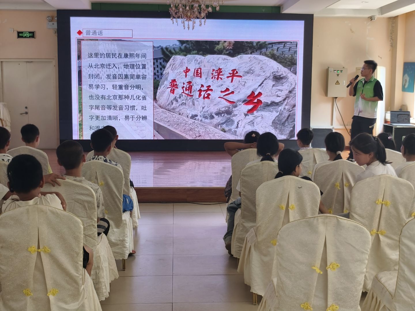 活動起始,實踐團成員先系統講解了普通話的定義:普通話是以北京語音為標準音,以北方話為基礎方言,以典范的現代白話文著作為語法規范的國家通用語言,‘普通’即‘普遍、通用’之意。隨后,實踐團成員介紹了“中國灤平普通話之鄉”的相關知識。在“為何學習普通話”環節,實踐團以視頻和實際案例闡述,讓孩子們直觀認識到,普通話是促進跨區域交流、拓寬發展空間的重要工具。