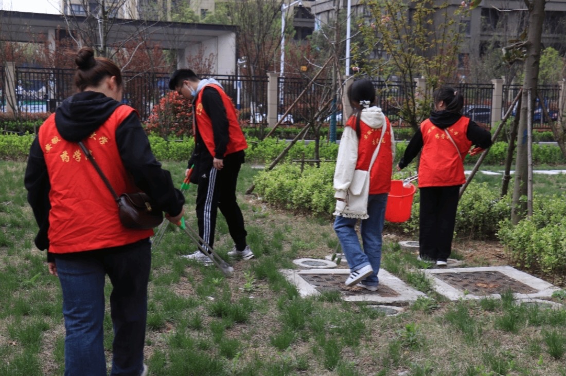 圖為同學們為社區清理垃圾。供圖 趙俊