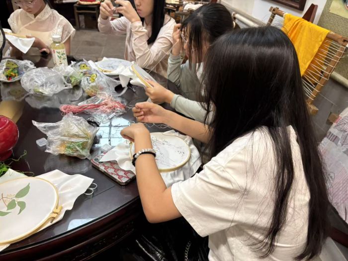 承習:傳習指尖藝,繡染江南春 7月21日至7月22日經緯創聲實踐小分隊先后前往了蘇州刺繡博物館、中國昆曲博物館、蘇州評彈博物館親身體驗昆曲身段教學與蘇繡刺繡針法。如何刺破傳統的繭房,讓古老絲線在當代煥發新生引發成員們的思考,F在需要的不是對抗機器的繡娘,而是駕馭機器的智者。讓針線聯通過去與未來,而非斷裂。