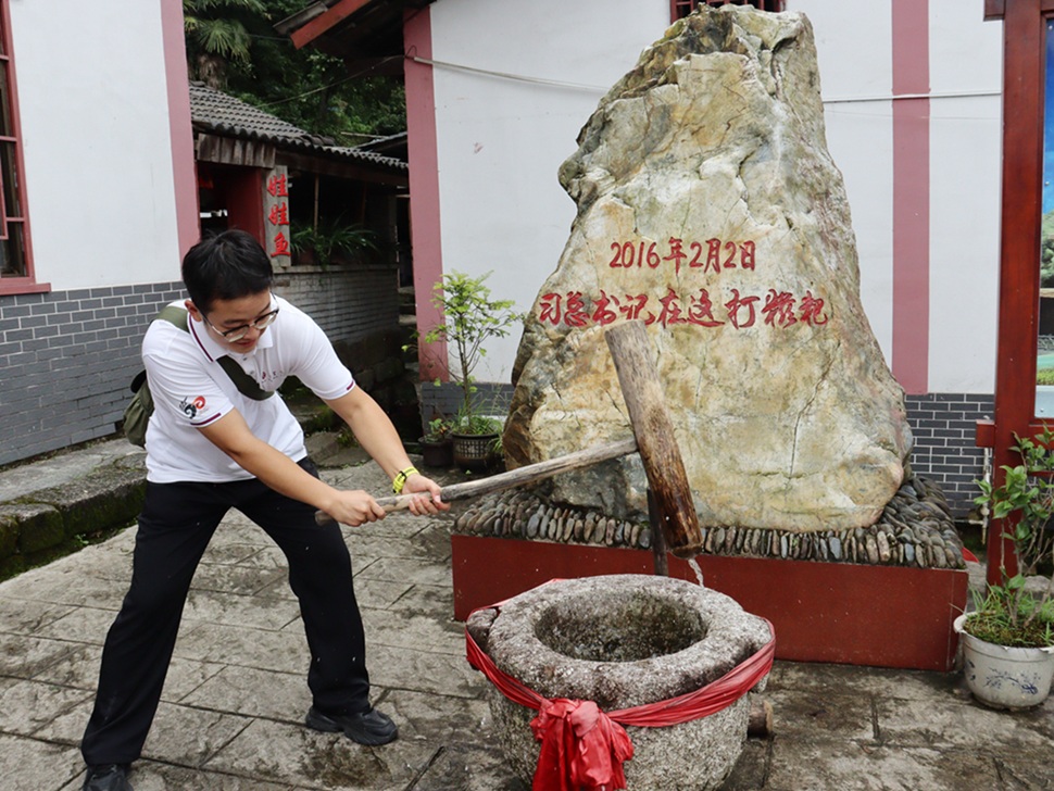 “糍粑越打越黏,生活越過越甜。”這句質樸的話語,在神山村有著格外深刻的含義。從神山村村民們口中,團隊了解到神山村在習近平總書記的鼓勵下,傳承發揚“艱苦奮斗攻難關”的井岡山精神,憑借勤勞的雙手,將曾經貧困的“山溝溝”建設成如今煥然一新的神山村。團隊成員親身體驗“打糍粑”,在勞動中深刻體會井岡山精神。神山村的故事震撼著團隊成員的心靈,讓他們真切感受到信仰的力量與實干的價值。