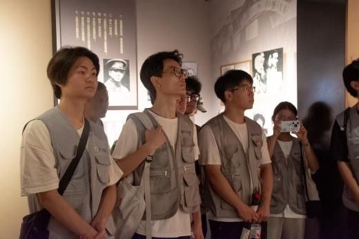 在八路軍駐西安辦事處,實踐隊員與陜建青年代表在講解員的引導(dǎo)下,一同追溯革命歷史,尋訪紅色根脈。在寧靜的小院里,隊員們目睹了一件件珍貴的史料和文物:隱蔽的地下室、窯洞式辦公室內(nèi)搖曳的煤油燈、磨損的舊公文包……這些實物無聲地講述著先輩們的英勇奮斗歷程。烈日炎炎下,微風(fēng)拂過,仿佛將那段崢嶸歲月的氣息帶到隊員們身邊。
