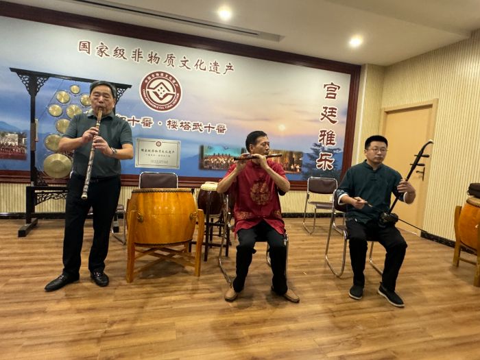 圖3嘉興大學平湖師范學院、教育學院“紅韻”突圍實踐團正在聆聽“細十番” 彭暢攝