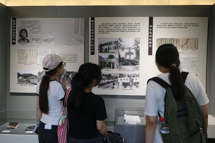 圖4嘉興大學平湖師范學院、教育學院“紅韻”突圍實踐團正在參觀樓曼文紀念館 徐佳薇攝