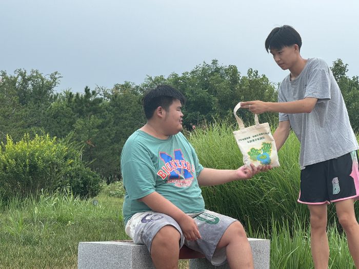 實踐進入后期,實踐團成員特意準備了兼具地方特色與實用價值的小禮品,熱情地分發給前來游玩的游客。接過禮品的游客們臉上洋溢著驚喜的笑容,孩子們舉著手中的小禮物蹦蹦跳跳,喜悅之情溢于言表。這份小小的饋贈,悄然成為連接實踐團與游客之間的溫情紐帶,讓彼此的距離在暖意中不斷拉近。