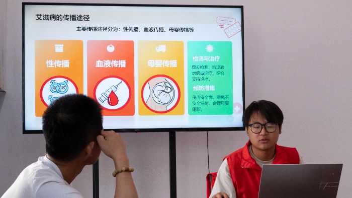 活動伊始,團隊成員通過PPT演示、短視頻播放等方式,直觀展示了傳統毒品與新型毒品的偽裝形式,如“奶茶杯”“跳跳糖”等隱蔽性極強的毒品,提醒居民尤其是青少年提高警惕,遠離陌生人提供的食品和飲料。在艾滋病防治環節,團隊重點普及艾滋病傳播途徑、預防措施及“四免一關懷”政策,破除“談艾色變”誤區。團隊宣講員李鑫用通俗語言結合真實案例強調科學認知與反歧視的重要性,指出艾滋病不通過日常接觸傳播,如擁抱、共餐、握手都是安全的,引導居民樹立“早檢測、早治療”觀念。