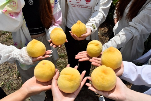 圖為成員們采摘的桃子。沈馨燁 供圖