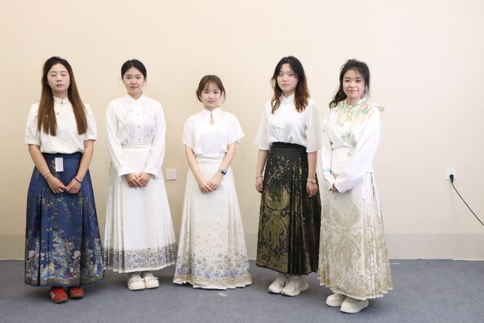 隨后,實(shí)踐團(tuán)去到了曹縣有愛共創(chuàng)基地體驗(yàn)漢服產(chǎn)業(yè)鏈條。實(shí)踐團(tuán)成員在這里完整體驗(yàn)漢服產(chǎn)業(yè)鏈:從設(shè)計(jì)師精準(zhǔn)切割、智能設(shè)備精準(zhǔn)刺繡,到直播主播試穿帶貨。每一步都是漢服非遺走向世界的重要密碼。同時(shí),我們實(shí)踐團(tuán)的同學(xué)們也各自搭配不同風(fēng)格的衣服,致力于為漢服非遺文化傳播添磚加瓦。