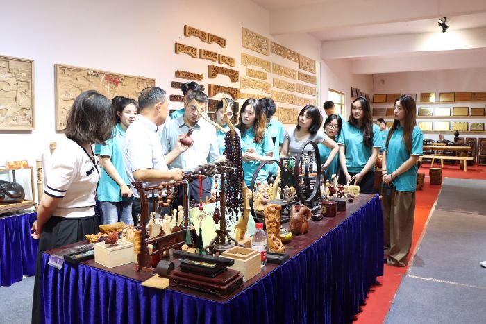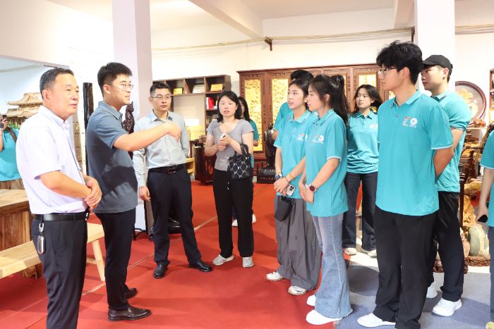 7月9日上午,實(shí)踐團(tuán)來到菏澤曹縣去探尋屬于曹縣的非遺文化,首站,他們來到了云龍木雕的生產(chǎn)與展示基地,在負(fù)責(zé)人的帶領(lǐng)下,他們見證了似云似龍、似荷似仙的木雕工藝品。