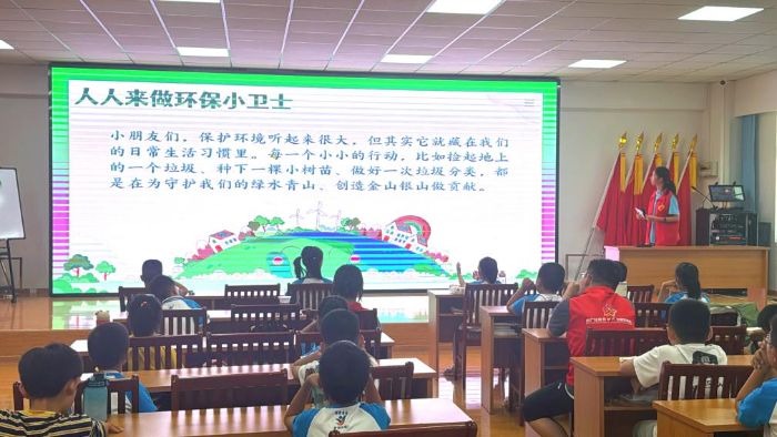7月10日,河海大學千鄉萬村社會實踐團走進江寧區湯山街道暑托班,為孩子們帶來了一場主題為“守護綠水青山,爭做環保小衛士”的科普宣講活動。正值“綠水青山就是金山銀山”理念提出二十周年,志愿者們以生動講解、真實案例和實踐引導,讓環保意識在孩子們心中扎根。