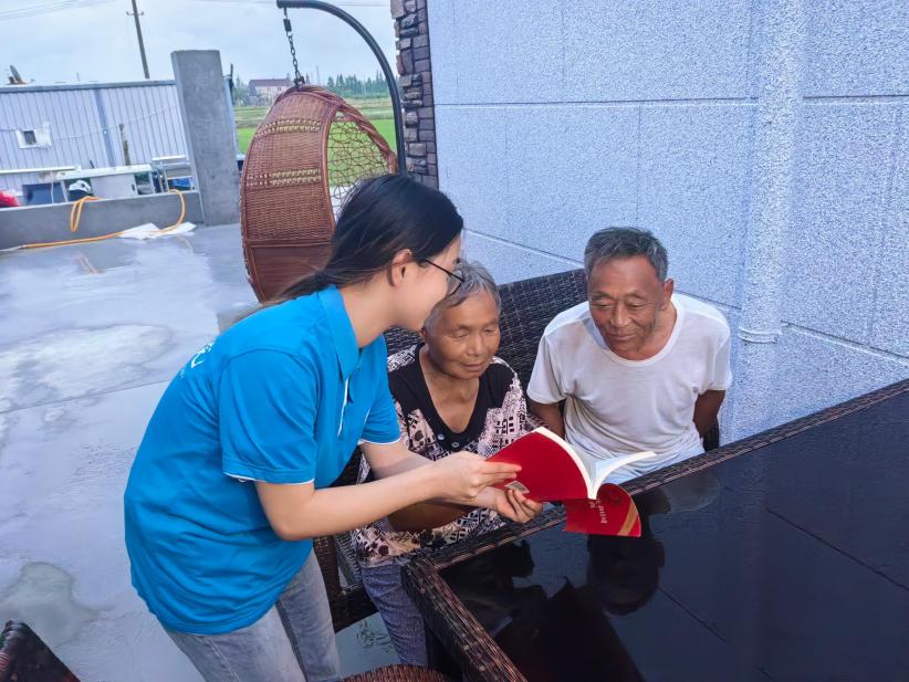 圖為成員依據民法典為老人解惑:“不動產的相鄰權利人應當按照有利生產、方便生活、團結互助、公平合理的原則,正確處理相鄰關系。”安安供圖