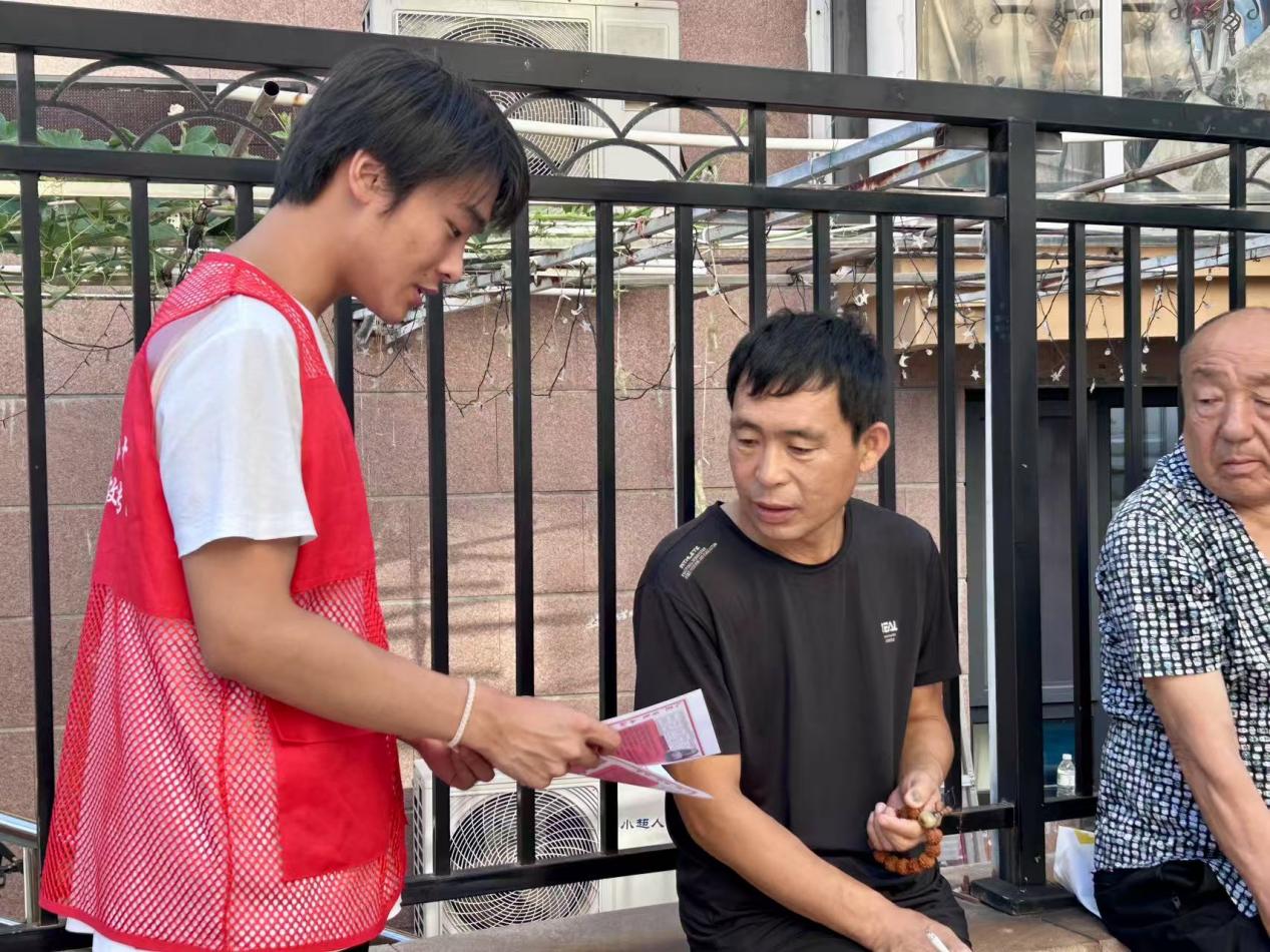 8月10日上午9時,宣傳團志愿者們準時來到欽安社區活動廣場開展活動。活動伊始,志愿者針對老年居民開展專項講解。針對老年居民關心的“誤判心跳停”問題,志愿者詳細演示如何通過觸摸頸動脈、觀察胸廓起伏判斷意識狀態,并用通俗語言解釋“黃金4分鐘”的重要性。