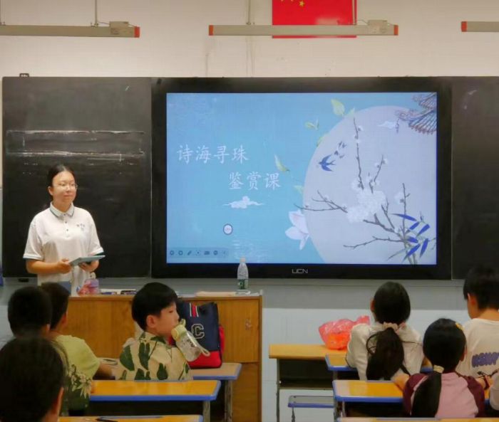 第二部分:文化浸潤扎根,厚植知識之基 “文以載道,教以化人。”支教團(tuán)以經(jīng)典文化為載體,為孩子筑牢知識根基。詩海尋珠鑒賞課以《詩經(jīng)》為本,隊員們梳理意象與情感脈絡(luò),結(jié)合當(dāng)?shù)仫L(fēng)貌引導(dǎo)聯(lián)想,讓詩詞之美與生活相連。備課中,團(tuán)隊反復(fù)研讀文本,挖掘鄉(xiāng)土元素,力求經(jīng)典貼近孩子生活。