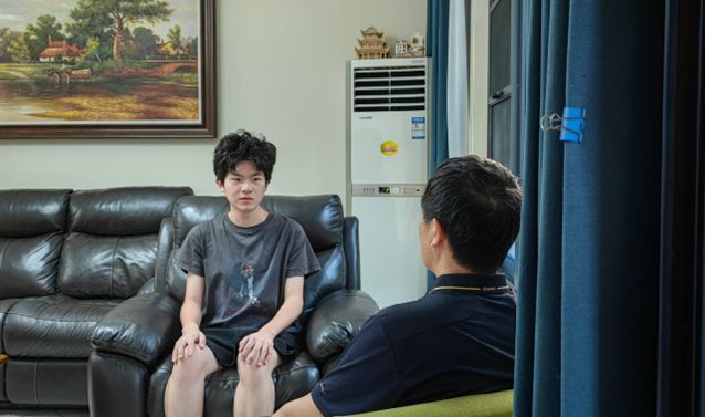 實踐團成員成一帆采訪海上橋村居民