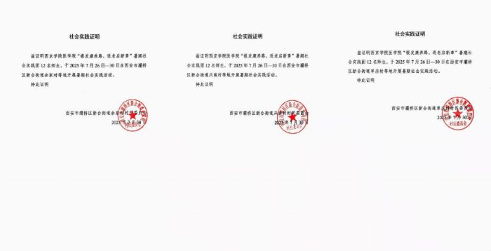 總結:青春之力,助力康養新篇 此次暑期實踐活動,實踐團隊成員通過在商山康復醫院的志愿服務,踐行了社會責任,傳遞了溫暖與關懷,深化了對康復醫療行業的理解;在灞橋多地的調研實踐,為社區適老化建設貢獻了專業智慧,實現了“讓專業知識服務家鄉發展”。