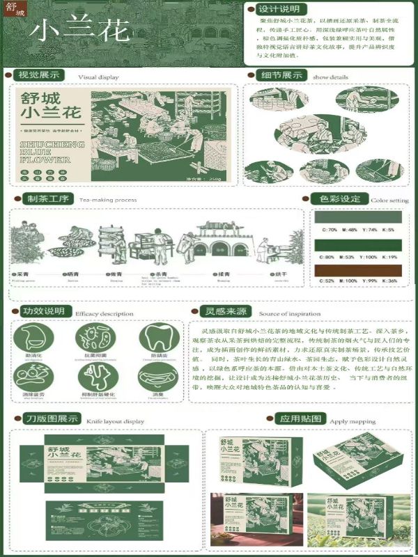 2025年6月20日,安徽工程大學動畫專業學生組成的團隊,在指導教師姚麗的帶領下,開展了“創設蘭韻・茶馨滿途”舒城小蘭花茶葉創意包裝項目。本項目展開14天,該項目旨在通過挖掘舒城小蘭花茶的歷史文化底蘊,結合現代設計理念與數字技術,解決傳統包裝文化內涵不足、功能單一等問題,助力地方茶產業升級與鄉村振興。