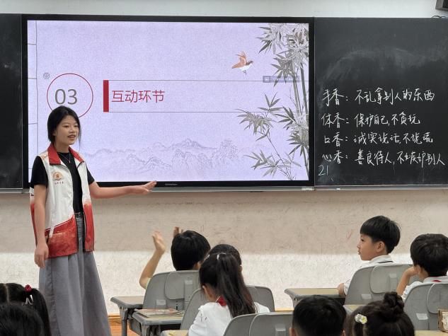 童心播“廉”:從書本到心田啟蒙廉潔新苗 帶著一路的思考與沉淀,實踐隊員們充分挖掘本土廉潔文化資源,精心設計啟蒙課堂教案。在新碧街道暑托班,一堂別開生面的“廉潔啟蒙”課拉開帷幕。隊員們不僅為小學生們分發了廉潔文創書簽、帆布包,更設計了互動環節。在體驗漆扇制作過程中,學生們自覺規律排隊,不貪多、不爭搶,秩序井然。這看似微小的行為,正是“規矩”意識的萌芽,如同紅磚在模具中成型,方正有度。在隊員指導下,孩子們在扇面上認真書寫“廉”字、繪制象征清正的圖案,制作屬于自己的“廉扇”。這一環節不僅鍛煉動手能力,更是在稚嫩心田播下廉潔的種子,期待他們如未來的“紅磚”,在成長熔爐中淬煉出方正廉潔的品格。