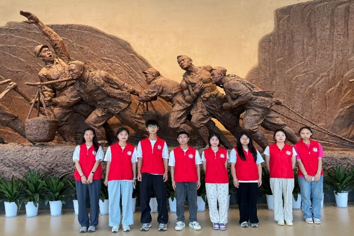 實(shí)踐團(tuán)來到延安革命紀(jì)念館廣場,高大雄偉的毛主席塑像引人注目,成員們在此瞻仰、合影留念。