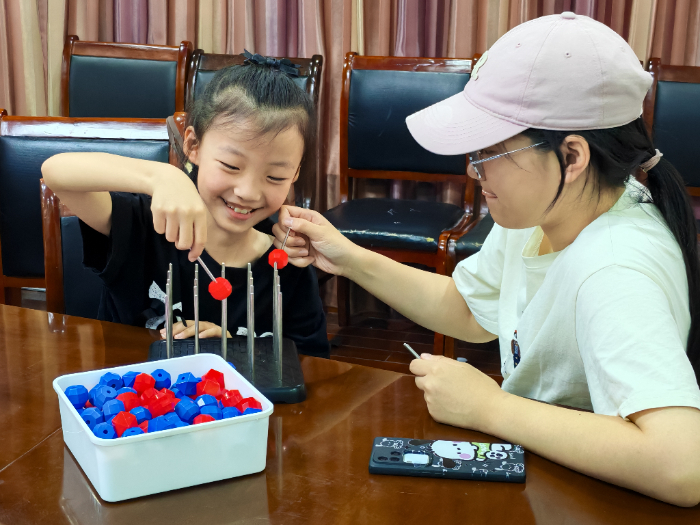 實踐團隊成員王雨軒在實踐活動中獲得很深感悟:在服務社區(qū)期間,我們化身“小老師”,采用寓教于樂的教學策略,把抽象的數(shù)學知識巧妙地融入一個個生動有趣的實際案例里,引入“漢諾塔”“九曲連環(huán)”“數(shù)獨”等多種數(shù)學趣味游戲,引導孩子們在實踐操作與思維挑戰(zhàn)中,激發(fā)對數(shù)學學習的興趣,啟蒙他們的數(shù)學思維。課堂上,我親眼見證他們從最初的迷茫畏懼,漸漸變得豁然開朗、樂在其中。我深刻體會到,我們所做的遠不止是數(shù)學知識的簡單傳授,更是在孩子們心中播下了智慧的種子,為數(shù)學文化的傳承與創(chuàng)新教育模式的探索貢獻了作為數(shù)學學子的一份力量。