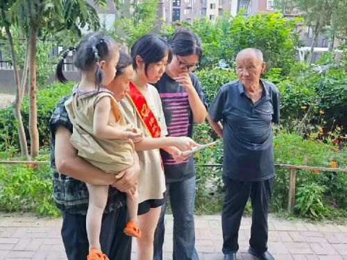 活動中,隊員們結合社區需求開展多維法治服務:部分隊員在社區廣場發宣傳單,用方言和案例解答婚姻家庭、鄰里糾紛等法律問題;另有隊員攜展板沿主干道流動宣講,以 “案例 + 法條” 形式講解《民法典》等知識,還發放含法律解讀、司法及法律援助聯系方式的折頁。
