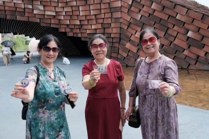 “阿姨您好,我們是南京財經(jīng)大學(xué)的學(xué)生,在做紫砂壺非遺文化的社會實踐。這是我們自己設(shè)計的徽章,想聽聽您對紫砂壺的了解或印象,可以嗎?”隊員陸何祺向一位駐足觀看的本地居民遞上徽章。接過這枚小巧別致的禮物,市民張女士臉上露出驚喜的笑容:“這個設(shè)計很別致!紫砂壺是我們宜興的驕傲啊,家家戶戶基本都有一兩把,泡茶特別好。看到你們年輕人這么用心宣傳,真好。”短短兩小時,三十余枚承載著傳統(tǒng)匠心的文創(chuàng)徽章被贈出,伴隨著二十多位不同年齡段的市民對紫砂壺的記憶與見解——有老人對老茶壺的懷念,有中年人對收藏價值的討論,也有年輕人對創(chuàng)新設(shè)計的期待。每一枚徽章的送出,都是一次非遺文化在當(dāng)代生活場景中的激活。