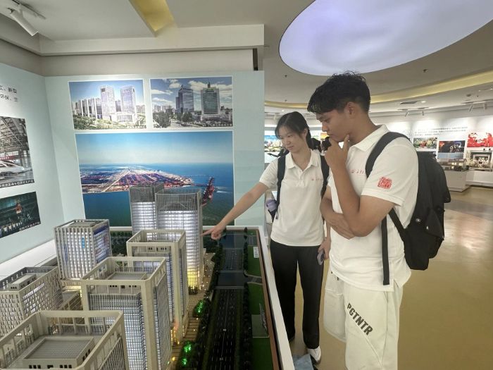 圖為實踐隊員參觀唐山市規劃展覽館(隊員陳科言攝)