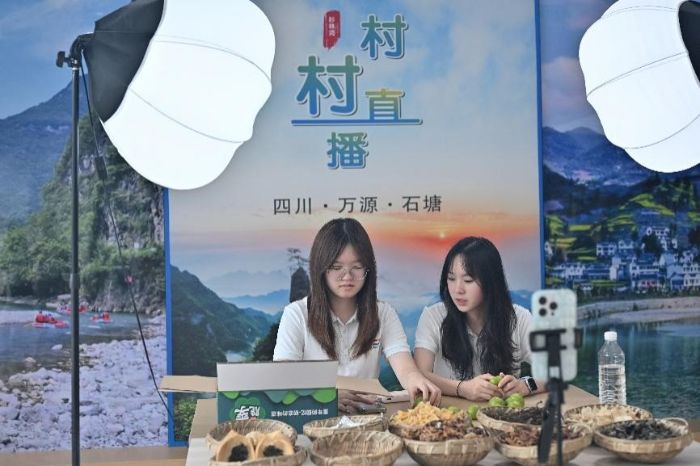 當日下午,實踐團迅速轉換角色,從知識的傳播者變成了電商主播。在深入調研當地特色農產品的品類特征后,他們迅速搭建起簡易的直播臺,一場別開生面的短視頻直播帶貨活動就此拉開帷幕。“家人們,今天團隊來到了萬源市杉林灣村,這里有很多優質的特色農產品……”成員們對著鏡頭,熱情地介紹著當地的農產品,從口感到營養價值,從種植過程到獨特之處,講得頭頭是道。他們還不時展示農產品的實物,讓觀眾更直觀地感受其品質。