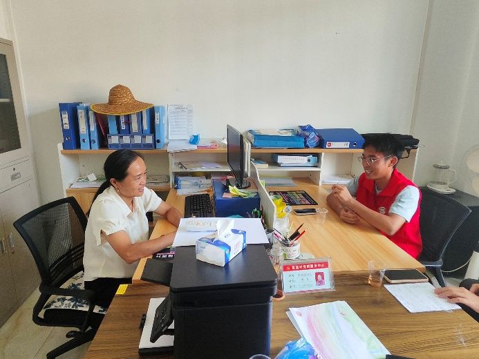7月14日上午,團隊抵達夏富村黨群服務中心,受到村主任羅英的熱烈歡迎。雙方就實踐活動展開交流,羅英主任給我們介紹了村里的基本情況,為團隊后續工作的開展奠定了基礎。隨后在主任帶領下,我們走一遍村子里的大道小巷,了解用于開展義教的場所的實際情況。