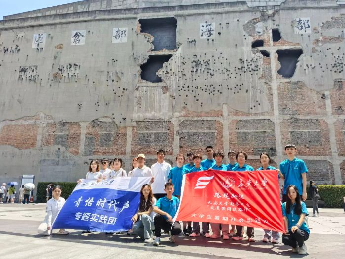 從淞滬會戰的‘守土有責’,到新時代的‘交通強國’,變的是戰場,不變的是擔當。四行倉庫斑駁的外墻上,彈孔與裂痕在夕陽里投下深淺不一的影子。這些痕跡是歷史的刻痕,也是跨越時空的對話者——它見證過八十余年前的殊死堅守,如今又映照著兩所高校學子并肩而立的身影。
