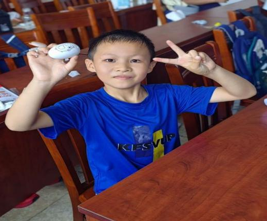隨后,成員們將編程邏輯拆解為簡單步驟,從設置出拳選項到編寫勝負判斷,步步引導。“我們可以把出拳選項想象成三個小伙伴,讓micro:bit認識它們。”形象的比喻讓抽象概念變得可感。看著孩子們時而皺眉思考,時而興奮交流,成員們倍感欣慰。當程序成功運行,孩子們歡呼雀躍地與同伴對決時,所有的精心準備都化作了值得。“我成功啦!”一個小男孩激動跳躍的身影,深深印在成員心中。