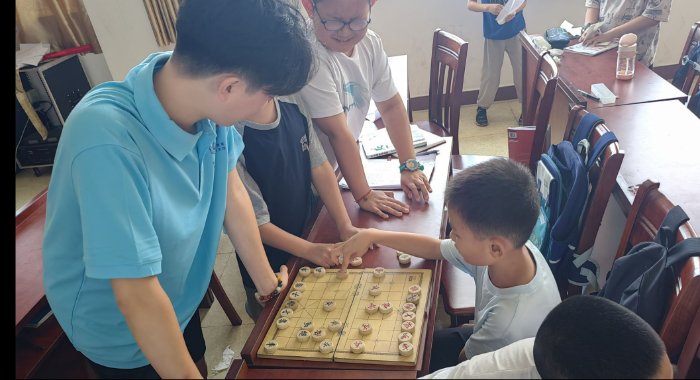 實踐團成員帶孩子們下象棋盧怡欣供圖