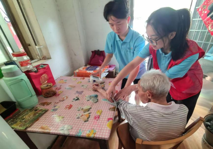 實踐期間,團隊還走訪了春風社區特殊家庭,為老人送去關懷。成員們耐心傾聽他們的生活點滴,了解健康需求,用真誠交流拉近距離。