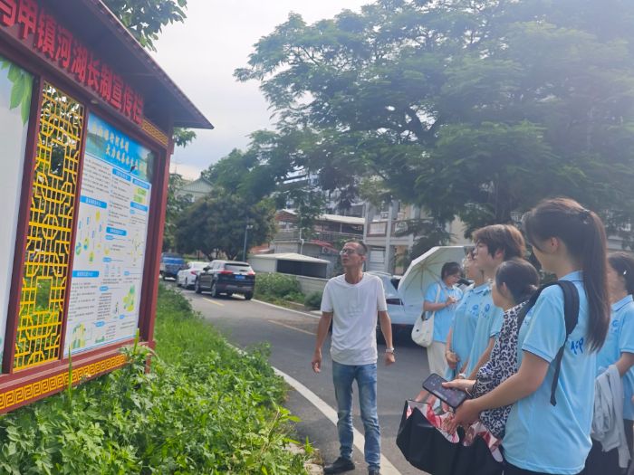 圖為馬甲鎮(zhèn)河長(zhǎng)辦負(fù)責(zé)人為實(shí)踐隊(duì)員講解河長(zhǎng)制。劉清滟 供圖
