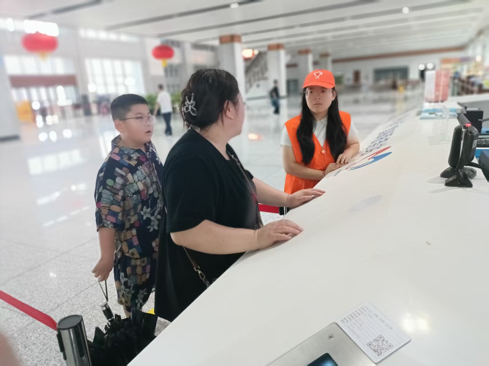 身著紅馬甲,值守高鐵站。我們是大學生志愿者,在這里引導旅客安檢、協助取票購票,為行動不便者搭把手,給問路的人指清方向。