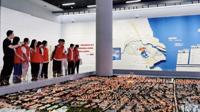 武高新規劃館則通過城市規劃沙盤、沉浸式影像、互動顯示屏等多元載體,呈現出武進高新技術產業開發區的“綠色發展藍圖”,讓隊員們直觀地感受到武高新這一現代化熱土的無限潛力。“你看這個區域,原本是傳統工業區,通過‘退城進園’和產業升級,現在建成了生態產業園,還配套了綠色能源供應系統。”講解員如是介紹。團隊成員蘇航在參觀心得里寫道:“好的發展,是讓經濟增長與生態保護有機結合,相輔相成的發展——武高新的規劃,讓我們看到了這種經濟與生態和諧共生的美好前景。”