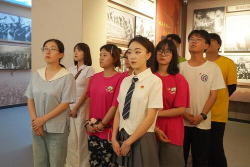實踐團成員們在參觀山東渤海軍區教導旅成立舊址。徐鵬程供圖