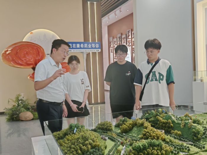 在參觀環節,團隊在饒主任帶領下走進生產區和展示廳,了解靈芝加工流程和產品形態。從原料篩選、切片烘干到現代化提取精制,每道工序嚴格把關。研發部門工作人員展示了最新的靈芝多糖提取技術及在抗疲勞、免疫調節方面的實驗數據,讓同學們直觀感受到中醫藥現代化發展的具體路徑。