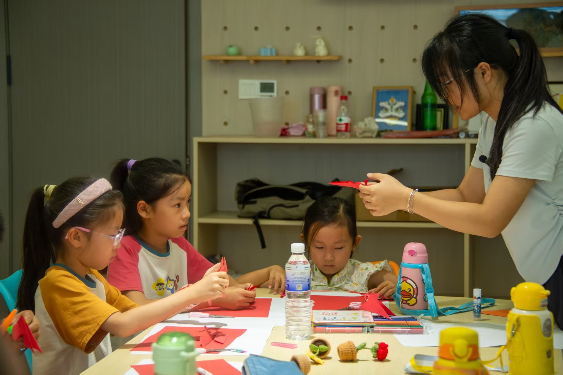 “剪五角星關(guān)鍵是對稱,彩紙對折,沿線慢剪,就像我們的先輩們,心往一處想、勁往一處使,才能凝聚起戰(zhàn)勝敵人的強(qiáng)大力量。”7月20日下午,沅江路手工課堂上,隊(duì)員徐暢一邊示范,一邊向孩子們傳遞剪紙背后的紅色寓意