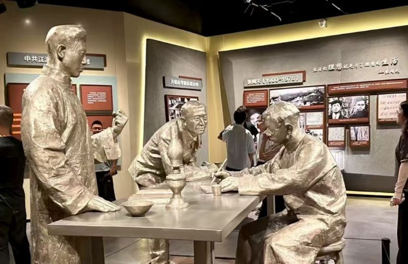 在蘇州獨立支部史跡陳列展,隊員們回溯了1925年9月江蘇省第一個獨立支部誕生的歷史。展廳內(nèi),再現(xiàn)先輩激昂陳詞的雕塑、泛黃的革命史料,勾勒出他們在簡陋環(huán)境中研習馬克思主義、發(fā)動工農(nóng)群眾的奮斗軌跡。隊員們重點學習了張聞天等無產(chǎn)階級革命家的事跡,其“生活的理想就是為了理想的生活”的箴言,讓大家深切體會到動蕩年代先驅(qū)者對理想信念的堅守。