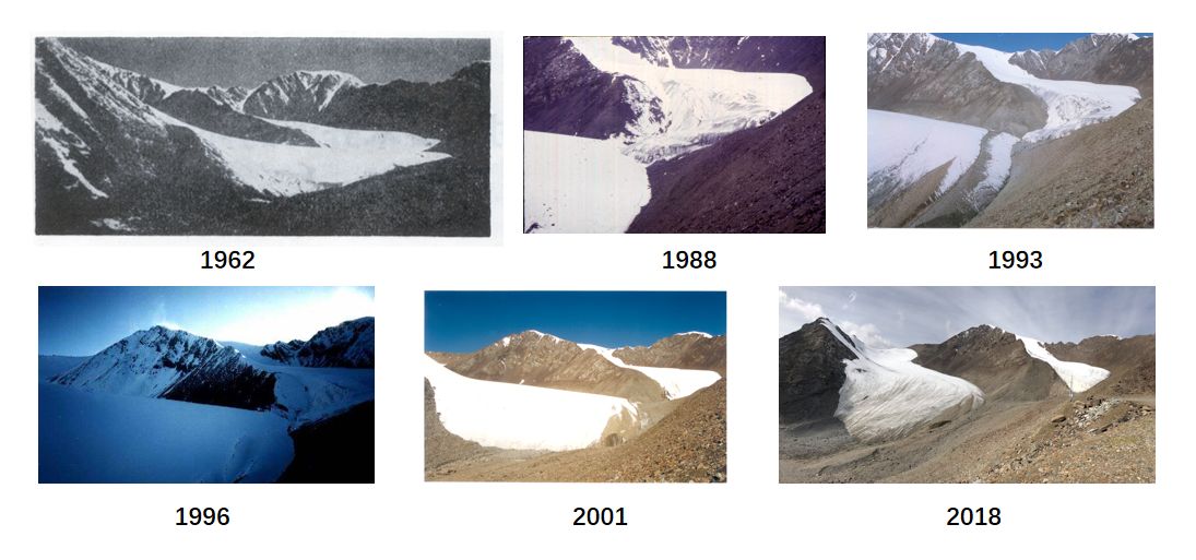 一組跨越 60 余年的影像,更是一部無聲卻震撼的生態警示錄。從 1962 年到 2018 年,鏡頭中的天山一號冰川悄然 “瘦身”:曾經連綿厚重的冰體不斷退縮、變薄,潔白的冰原逐漸收縮,昔日壯闊的 “冰雪王國”,如今部分區域已淪為 “殘雪之地”。時間在冰川上刻下的消融軌跡,清晰展現著全球變暖對冰川生態系統的嚴峻沖擊,也讓 “生態保護刻不容緩” 的認知,深深烙印在每一位實踐隊員心中。姜江瑞通訊員