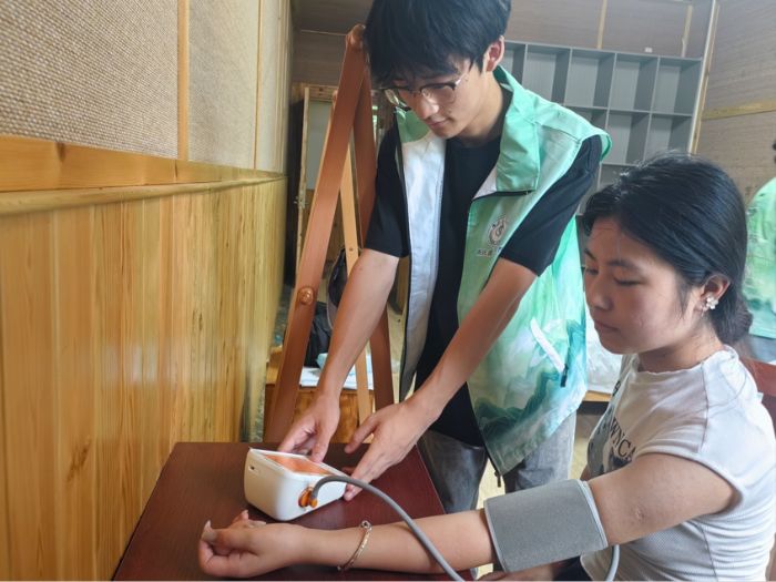 下午,實踐隊轉移至營地,開展健康監測活動。隊員們兩兩一組,互相測量血壓、心率、血氧飽和度等基礎健康指標。測量結果顯示,各項數據均在良好區間。研究表明,森林環境中高濃度的負氧離子對人體健康具有積極影響,能夠改善心肺功能、調節神經系統、增強免疫力等。隊員們通過此次健康監測,真切地感受到了森林康養的科學性與有效性。