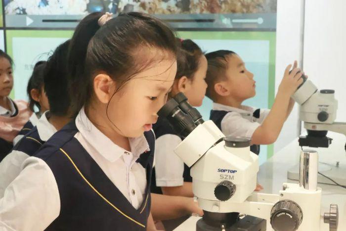 圖為小朋友們通過顯微鏡觀察儲糧害蟲 宋子怡攝