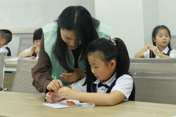 圖為宣講團成員指導小朋友用橡皮泥制作昆蟲模型 宋子怡攝
