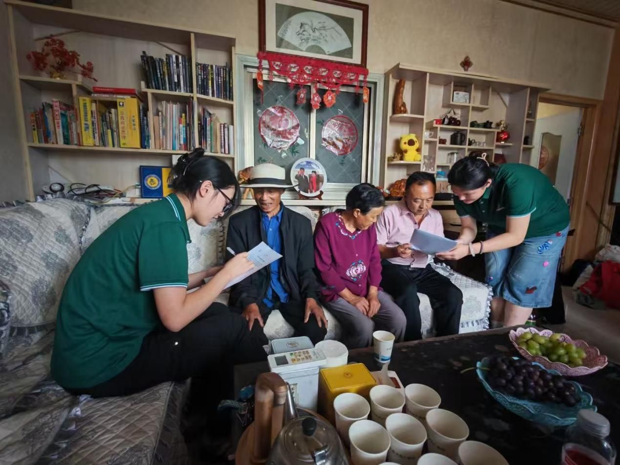 圖為王曉娜等人向村民發放調查問卷了解當地普通話使用現狀。王夢語 攝