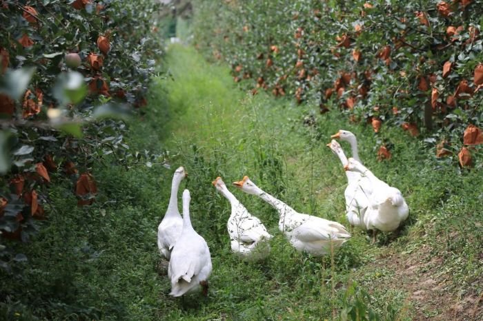 圖3蘋果園里既能除草又能產肥的大白鵝 石洪儒攝