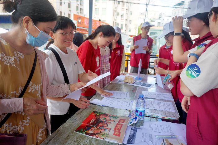 圖為實踐團成員向群眾發放調查問卷。“基層有法”實踐團通訊員 林春樂 攝