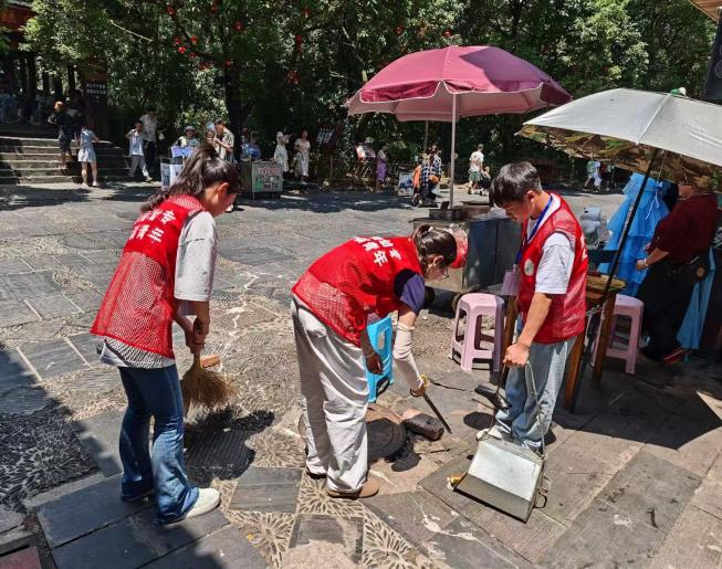 民至上”的安全理念送入尋常百姓家;隨后與環衛工人并肩勞動,清掃風雨橋街道,踐行“綠水青山就是金山銀山”的生態文明思想。活動中,侗族村民主動提供工具、苗族阿婆送來涼茶,民族情誼在勞動中升溫。同學們深刻體悟:志愿服務不是單向“給予”,而是各民族“像石榴籽一樣緊緊抱在一起”的生動實踐。