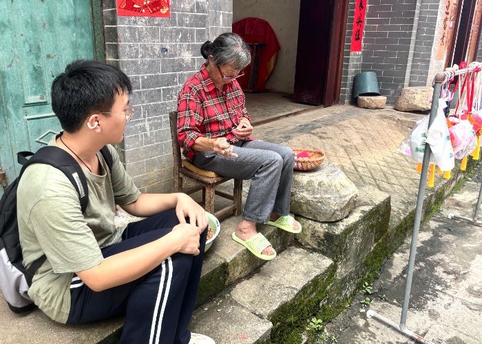 圖3 實踐團隊成員黃柯嵐與韋奶奶交流